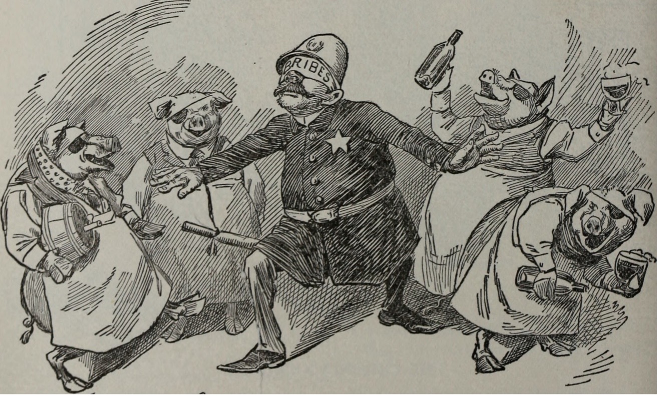 A 1902 cartoon of a bribed policeman.